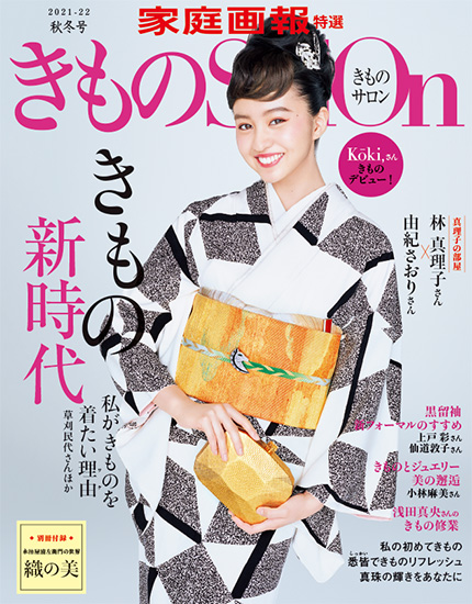 『きものSalon 2021-22 秋冬号』の表紙と紙面にて木村拓哉さんと工藤静香さんの次女で、モデルのKōki,さんにご着用いただいております。