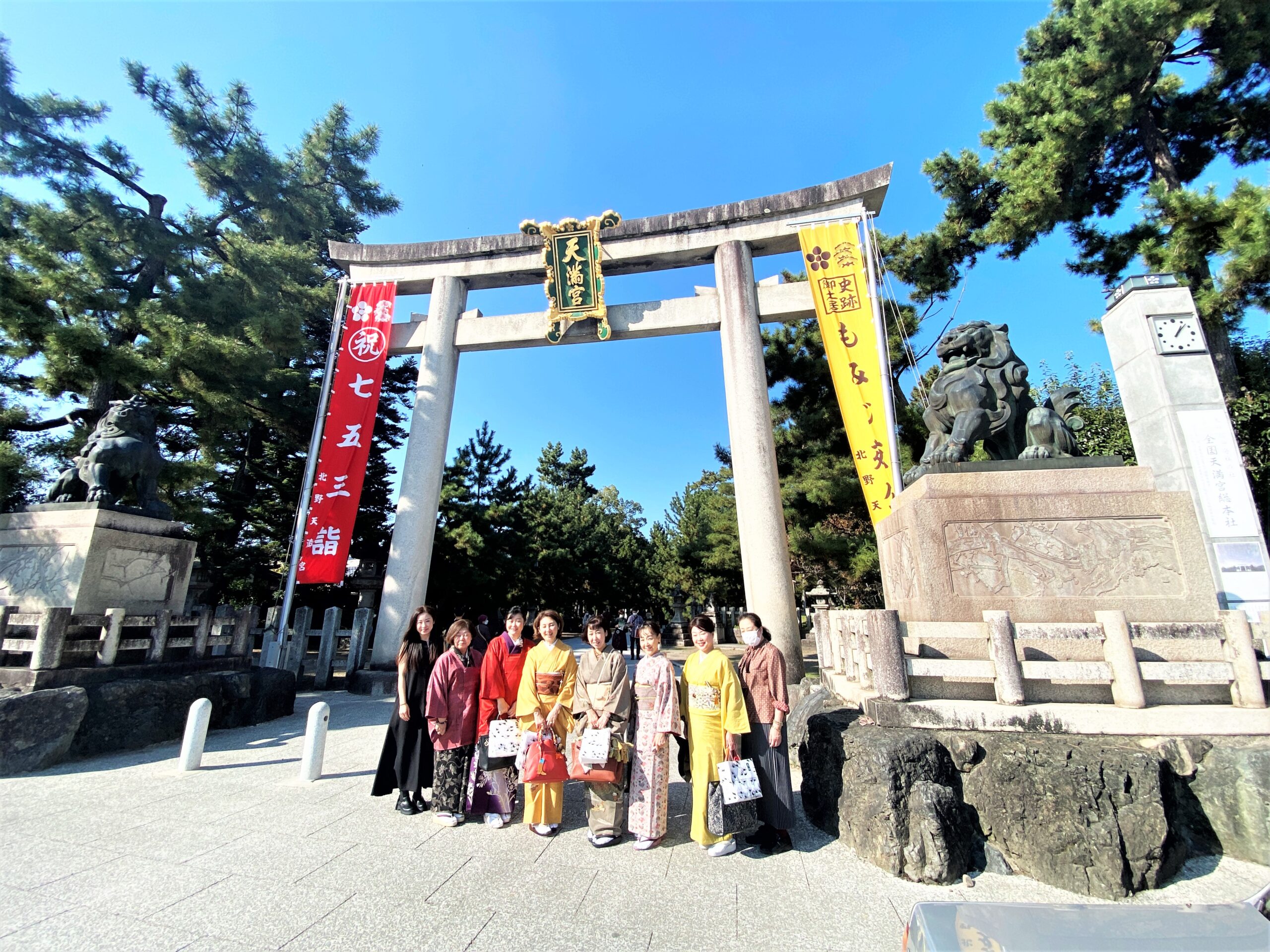 風情ある花街の景色と歴史ある店構えにみなさまのお着物姿がとてもお似合いでした。
