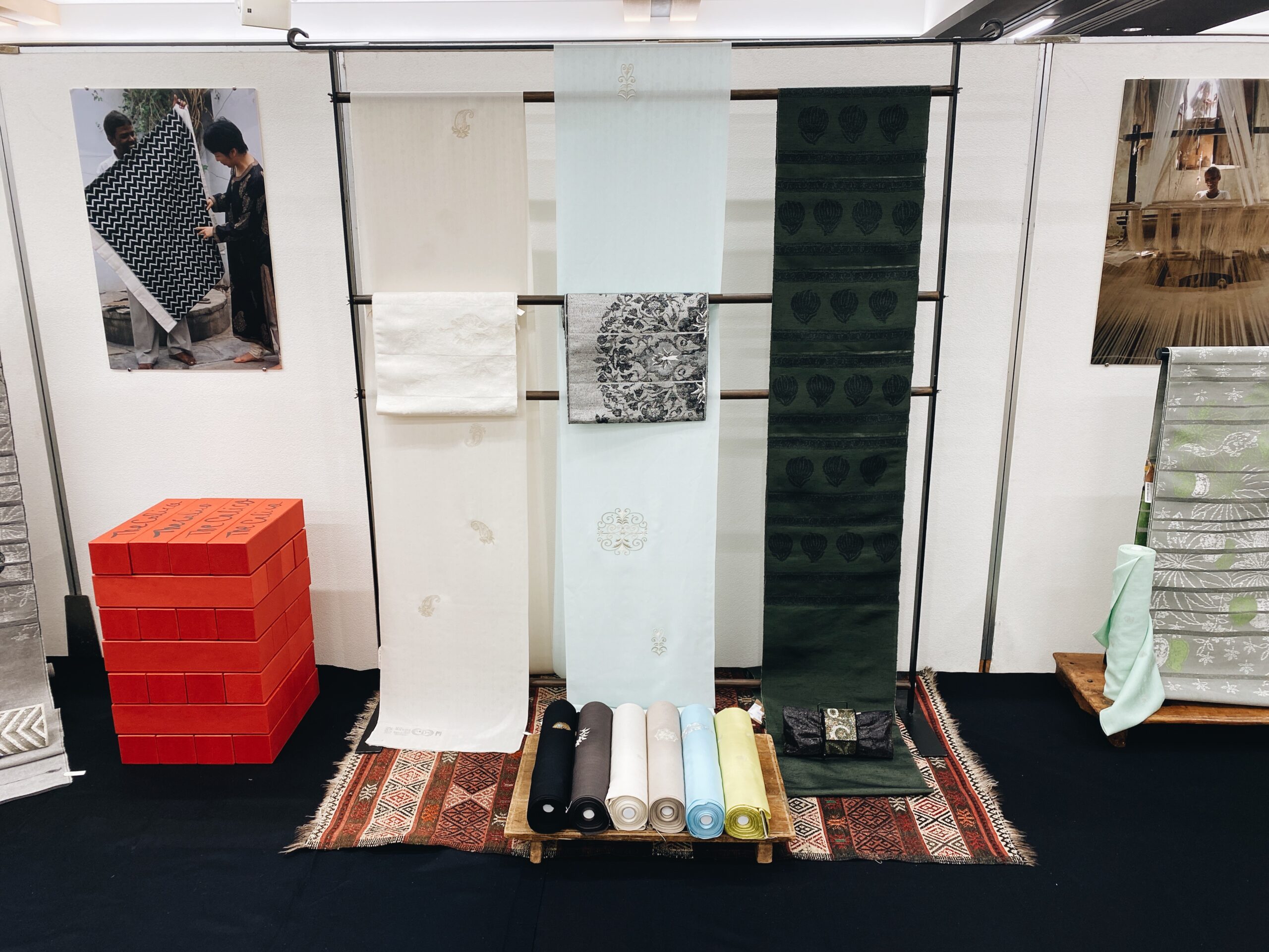 お互い過去にこの美術館を訪れたことがあり、美術館で感じたこと、目にした物をものづくりの源泉とし帯と着物の制作をスタート。