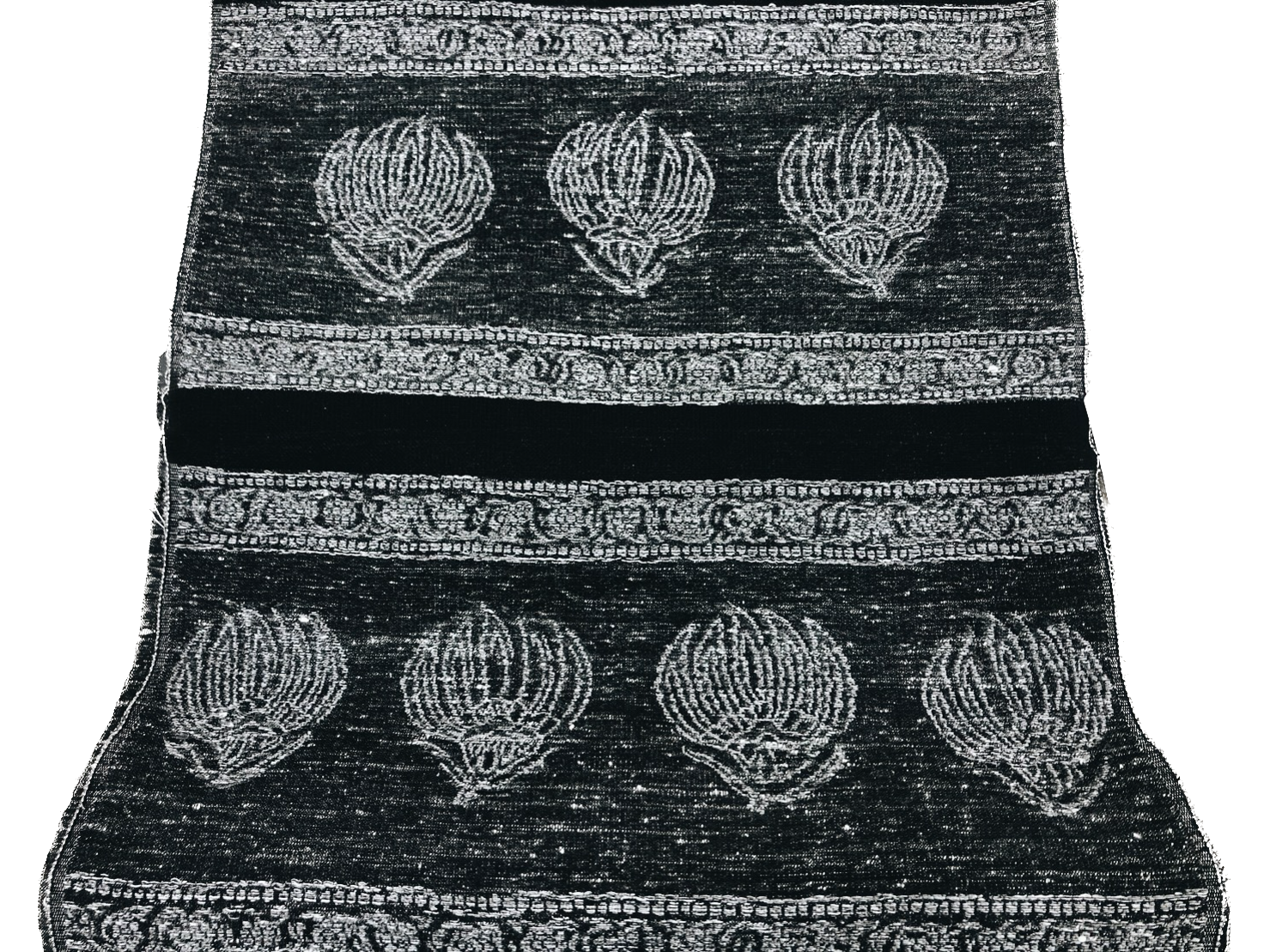 図案は「The Calico Museum」の収蔵品が掲載されている山辺知行先生の大著「THE CHINTZ Collection The Calico Museum of Textiles India」から発想を着手しました。
